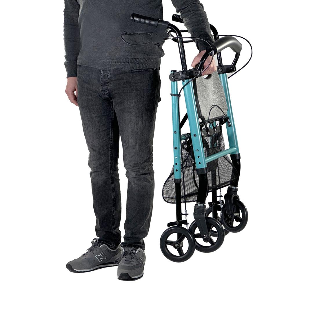 Está diseñado con un sistema de fácil plegado que permite ahorrar espacio en interiores y transportarlo cómodamente.